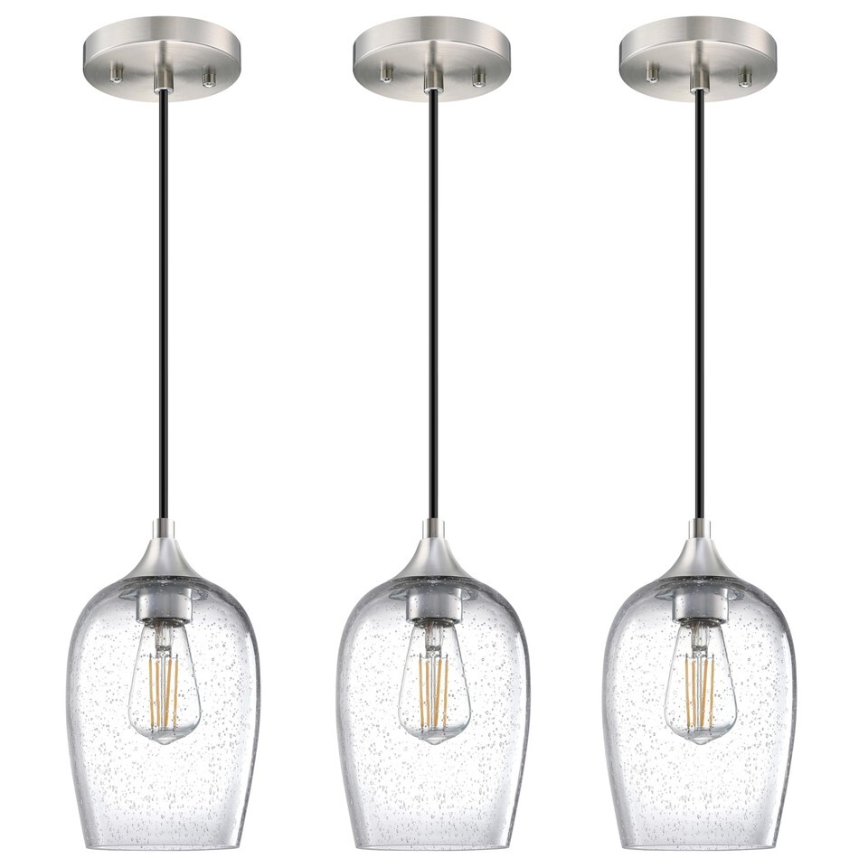 3 Pack 1 Light Hanging Indoor Kitchen Island Pendant Ceiling Light Fixture,5.1" Hand Blown Clear Seeded Glass Brushed Nickel Finish Modern Farmhouse Dinning Over Sink
