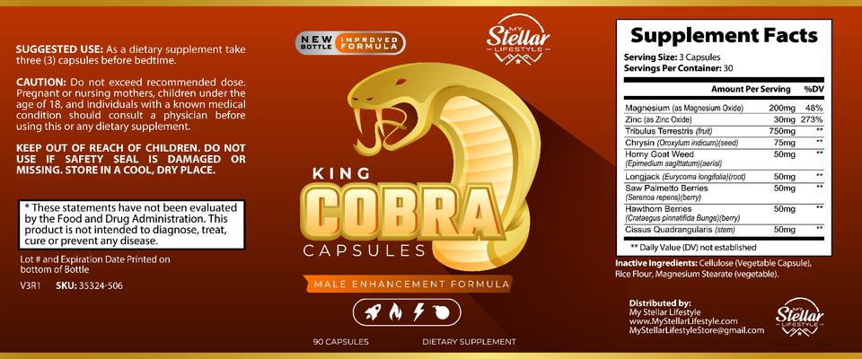 - 3 Pack King Cobra Capsules for Men-New Improved Formula-90 Capsules x3