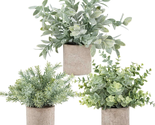 - 3 Pack Mini Potted Fake Plants Artificial Plastic Eucalyptus Plants Topiaries fo