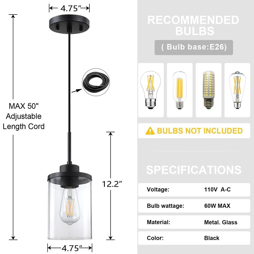 4.EASY INSTALLATION: Hard wired.Includes all mounting hardware for quick and easy installation.Comes with 50" adjustable cord,these kitchen hanging light fixtures can be applied to the sloped ceiling for your space needs.