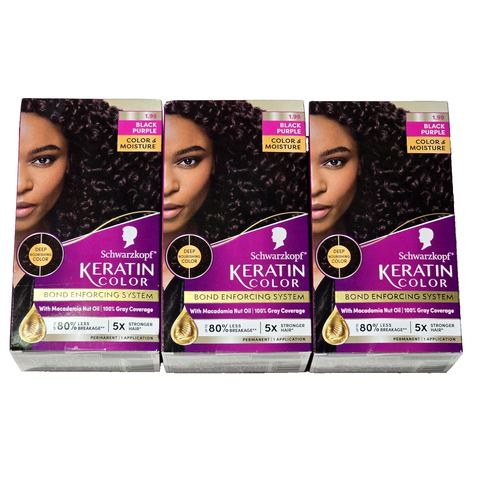 - 3 Pack Schwarzkopf Keratin Color 1.99 Black Purple Permanent Hair Color