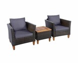 - 3 Piece Patio Rattan Bistro Furniture Set with Wooden Table Top-Gray
