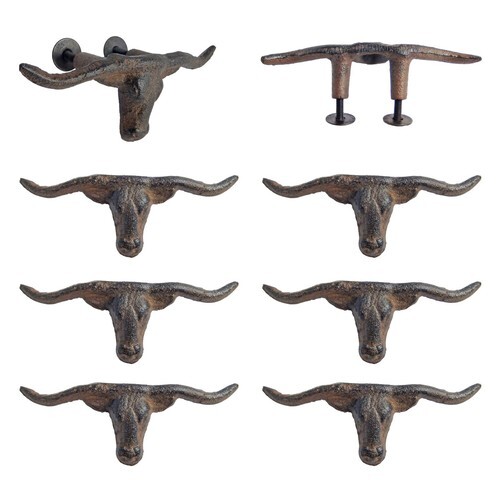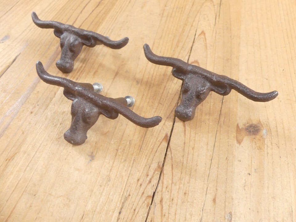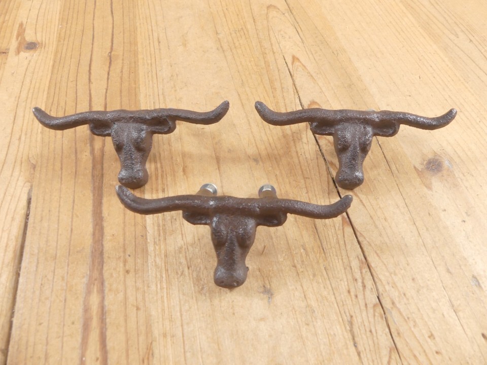 3 RUSTIC CAST IRON STEER DRAWER PULLS! SALE INCLUDES ALL 3!