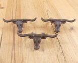 - 3 RUSTIC LONGHORN STEER DRAWER HANDLES PULLS 4 1/2" CAST IRON COW BULL BIN HORN