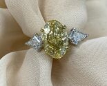 3 Stone 3Ct IGI Intense Yellow Oval Cut Lab Grown Diamond Ring 18K Gold 4.40Ctw