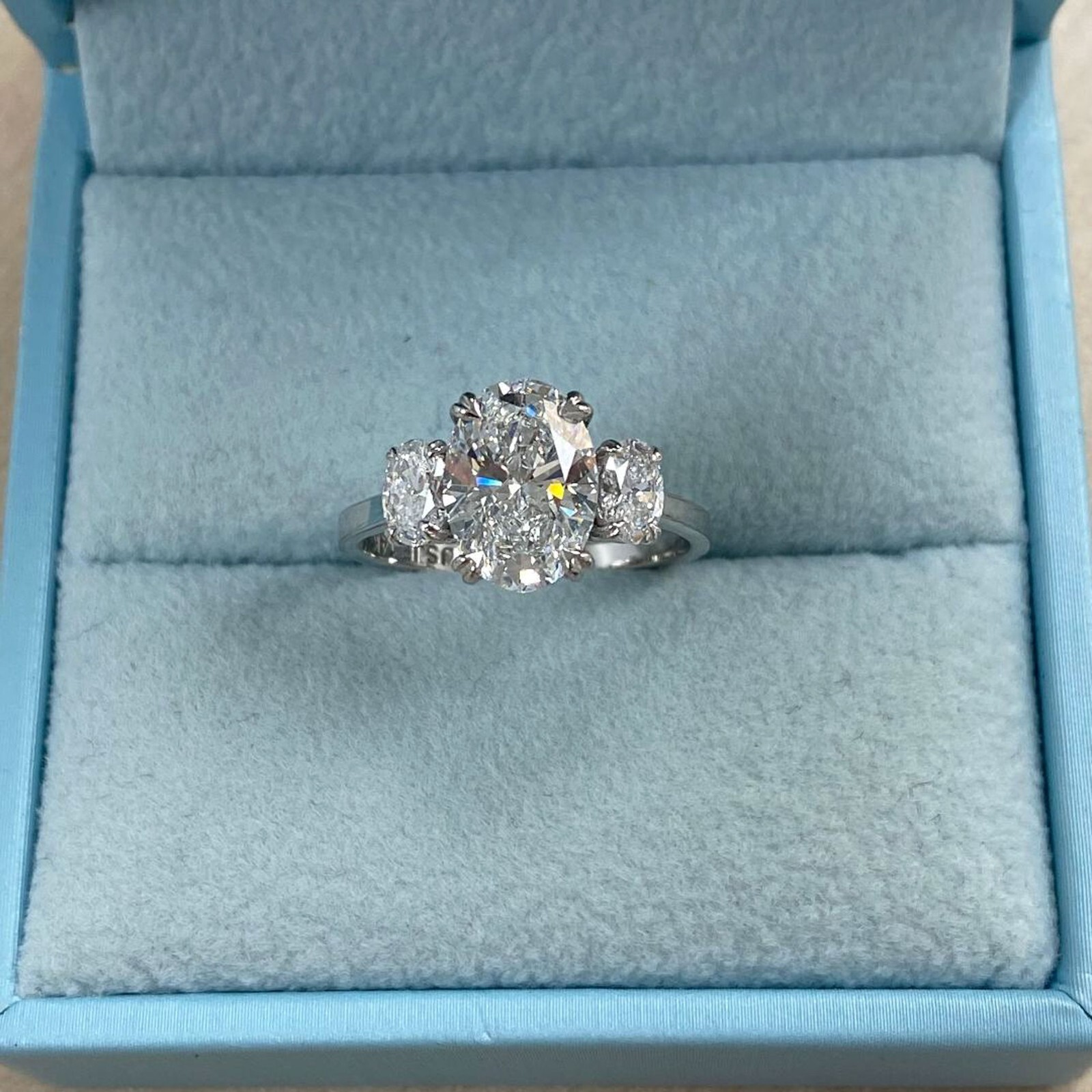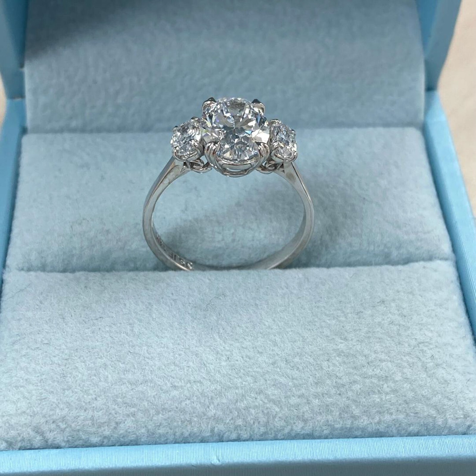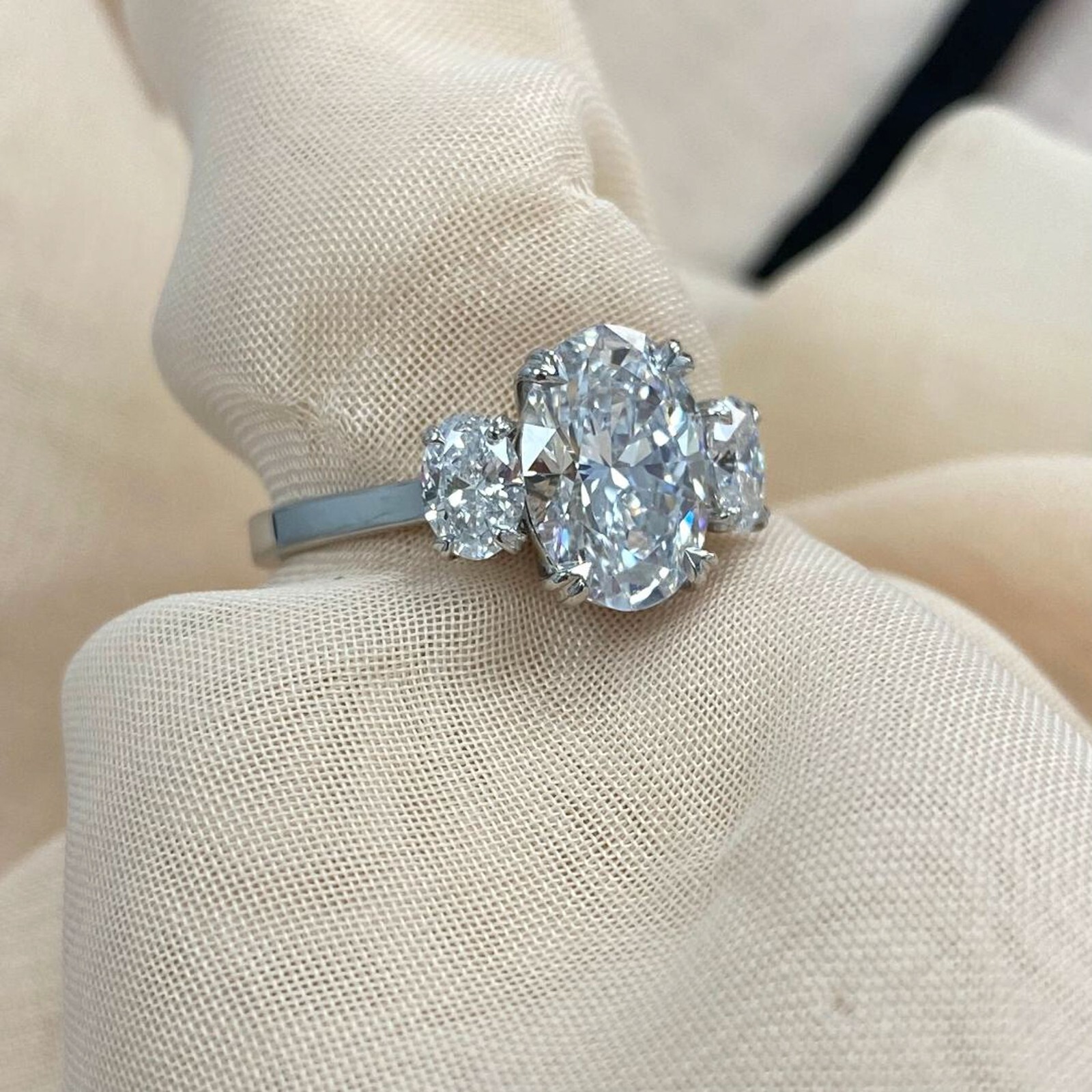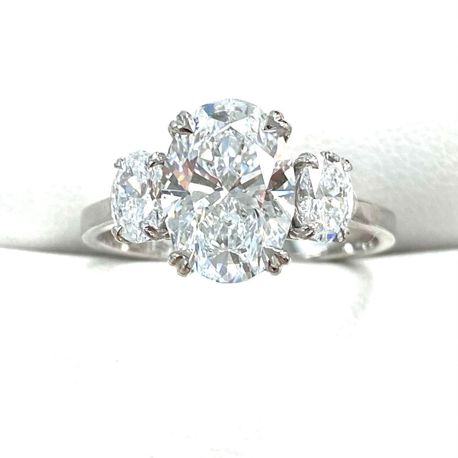 3 Stone IGI 2.16 Ct E-VS1 Oval Brilliant Cut Lab Grown Diamond Ring 14k Gold