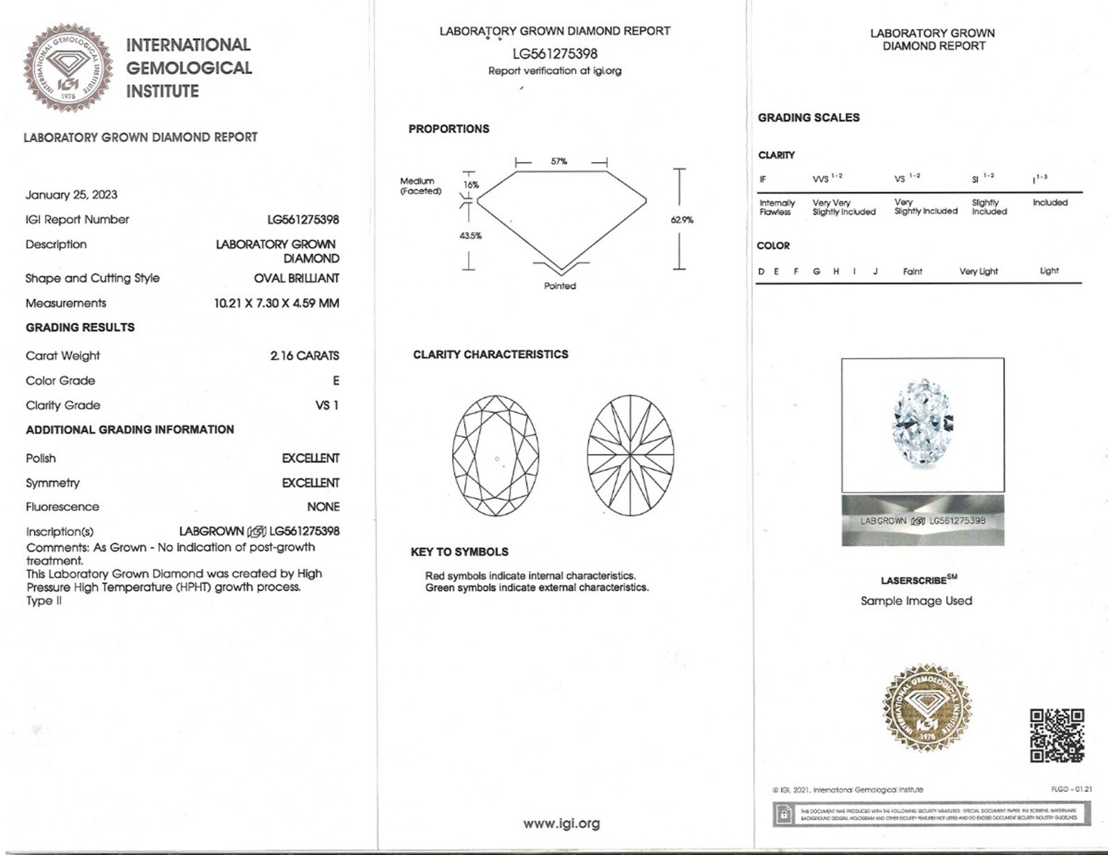 Lab Grown Center Stone Specs