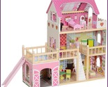 - 3-Storey Dolls House with Furniture, Garage & Balcony – Gift for Girls Age 3-6