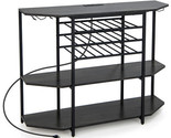 Specifications: Color: Brown/Grey Material: Engineered wood metal Overall dimension: 47.5" x 16" x 36.5"(L x W x H) Coutertop dimension: 47.5" x 16"(L x W) Net weight: 44 Ibs Load capacity of countertop: 220 lbs Load capacity of middle shelf: 110 lbs Load capacity of bottom shelf: 88 lbs AC outlets: 125V/12A USB ports: 5V/2A Power cord length: 4.9FT Hold capacity of wine racks: 21 bottles Hold capacity of wine glass racks: 8 glasses Box Qty: 1(May vary by batch)