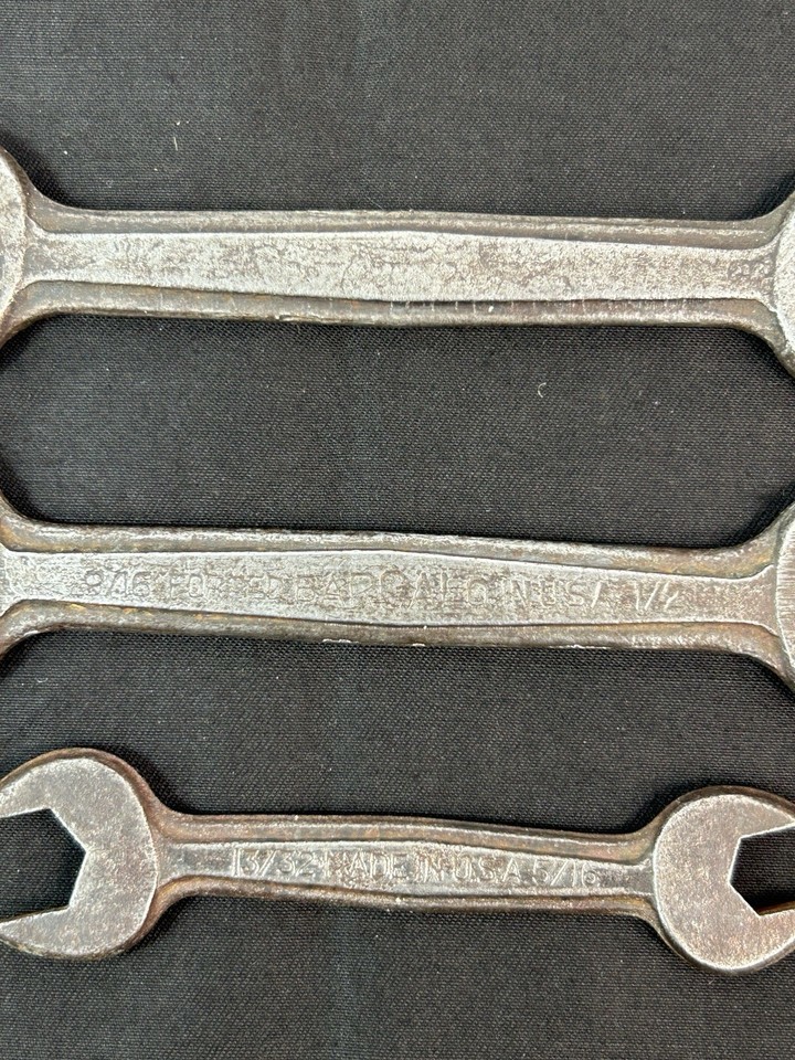 - 3 Vintage Barcalo Forged In USA Open End Wrenches 9/16" - 1/2" & 13/32" - 5/16"