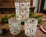 - 3 Vintage Glasses Christmas Drinking Glasses Tumblers bear snowman santa gold