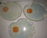 3 Vintage Porcelain Snack Set Cup Saucer Germany Luster Ware Cake Plate. Iridescent white and peach. Vintage age with normal wear and tear from an item of this age.