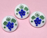 3 Vintage Purple & Green Grapes & Leaves Milk Glass Buttons 1/2 inch