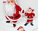 3 Vintage Red Flocked Santa Dancing Santa w Pixie Elf Friend 3 1/4 - 9 Inch