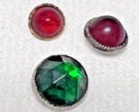 3 Vintage Round Metal Dress Buttons Glass Set in Metal Green Red