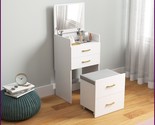 Functions as a vanity table, nightstand, and stool. Flip up the mirror to reveal a beauty station or close it for a sleek side table look.