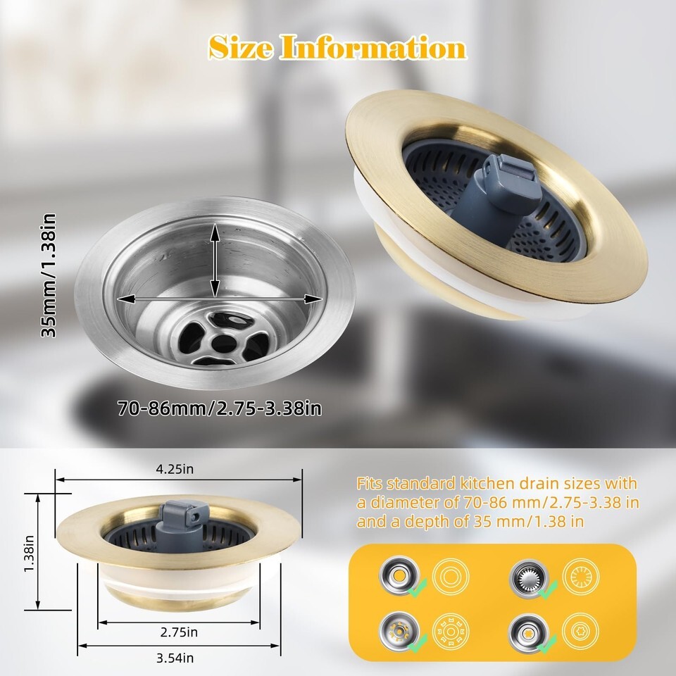 Universal Style for 3-1/2" Kitchen Sink: iFealClear sink strainer fits drains with openings of 2.76 to 3.38 inches and a depth of 1.38 inches. Please ensure you measure your drain hole size prior to purchase