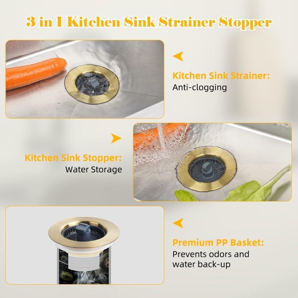 - 3-in-1 Kitchen Sink Drain Strainer Stopper Stainless Steel Chrome 3-1/2 Inch