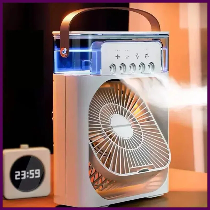 - 3-in-1 Portable Air Cooler Fan, Mini AC Humidifier LED Light – USB Rechargeable