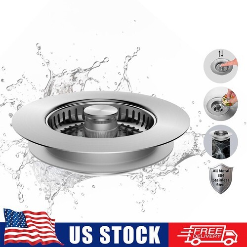 - 3-in-1 Stainless Steel Kitchen Sink Strainer Stopper Pop Up 3-1/2 Inch Drain