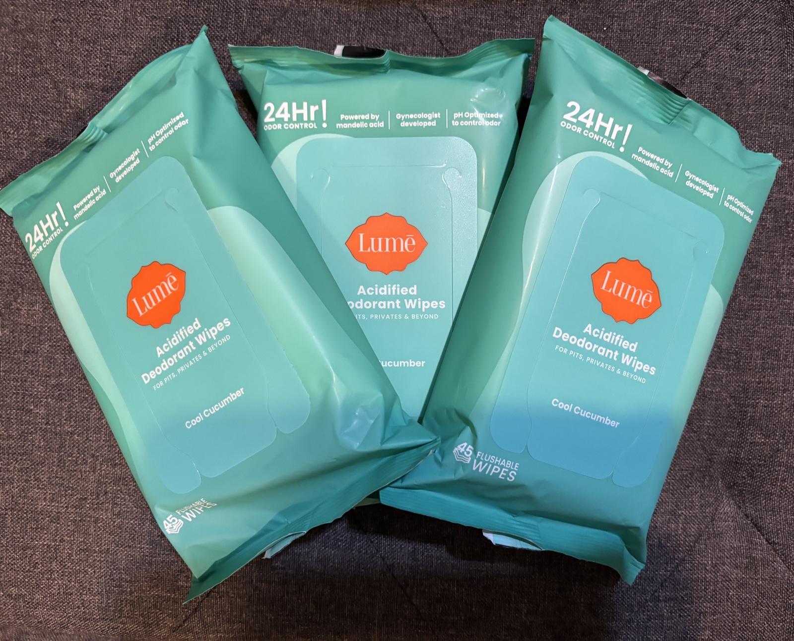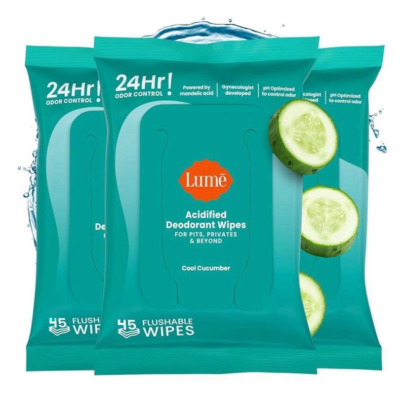 - 3-pack of Lume Acidified Deodorant Wipes - Cool Cucumber (3 packs of 45 wipes)