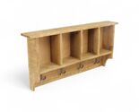 Crafted with practicality in mind, this wall-mounted rack includes a spacious top shelf for hats and small items, open cubby spaces for additional storage, and four sturdy hooks that securely hold coats, bags, and scarves. Its compact design?measuring 14.5 inches high, 29.5 inches wide, and 4.25 inches deep?mounts easily to the wall, freeing up valuable floor space while keeping your space tidy and clutter-free.