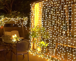 9.8x9.8ft 300 LED Curtain Lights(not connectable): The warm white LED fairy curtain lights feature 10 strings of lights, each with 30 LED bulbs. The 9.8x9.8 ft size is large enough to cover most windows and walls, creating a wider and more impressive lighting effect. The curtain lights are perfect for indoor and outdoor Christmas decorations, and will make your home shine! Please note that multiple sets of Christmas curtain lights cannot be connected.