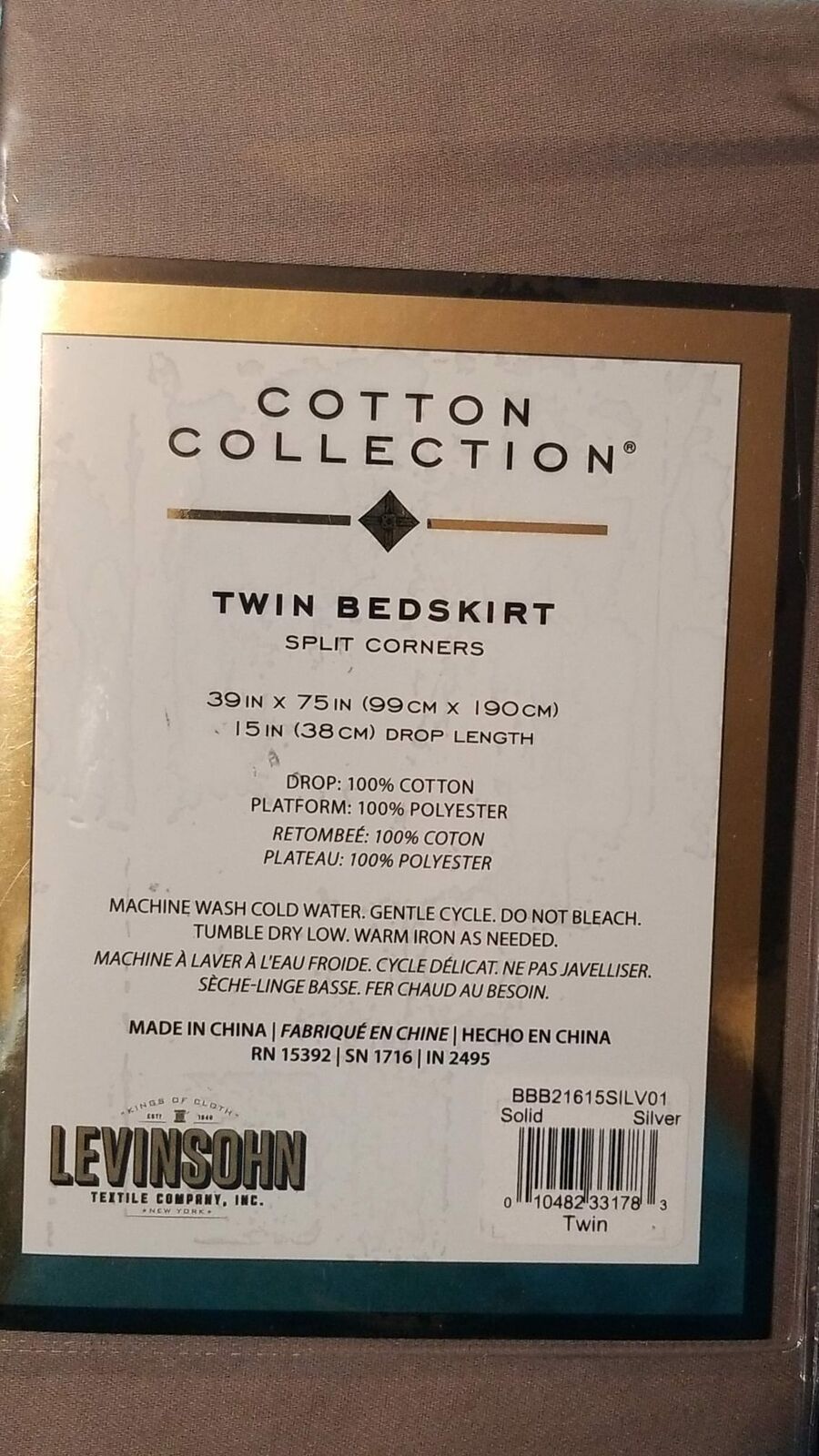 - 300-Thread-Count Cotton Twin Bed Skirt in Silver (LOC TUB-104)