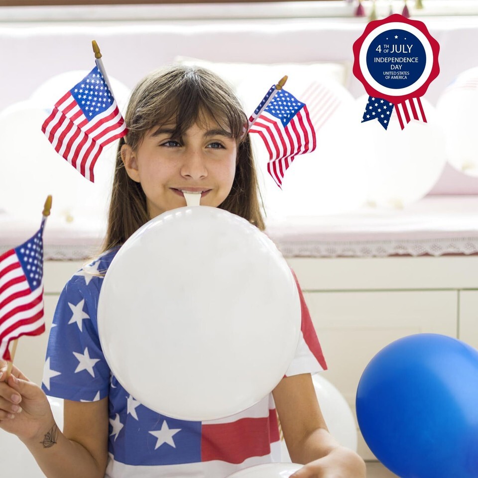 Usage Scenario Description: The Red White and Blue Latex Balloons are not only suitable for 4th July Party Decorations,Patriotic Anniversary,Flag Day,but also for celebratory, anniversary activity, indoor and outdoor themed party decorations