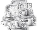 Juego de Vajilla de Porcelana de 30 Piezas ? Diseño Marmol Gris ?Elvira? para 6 Personas