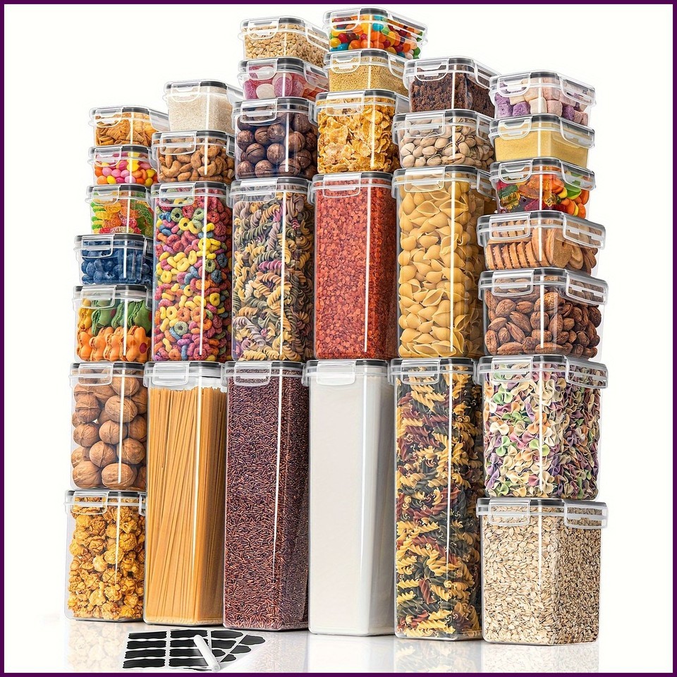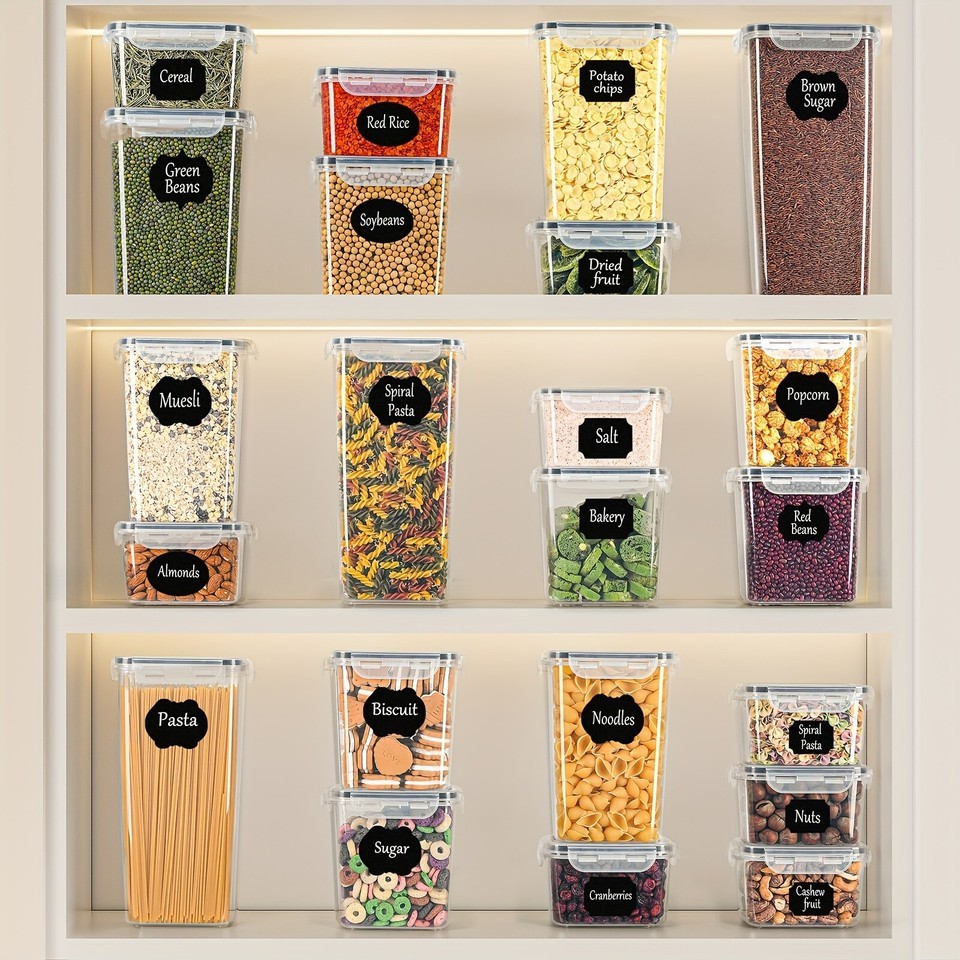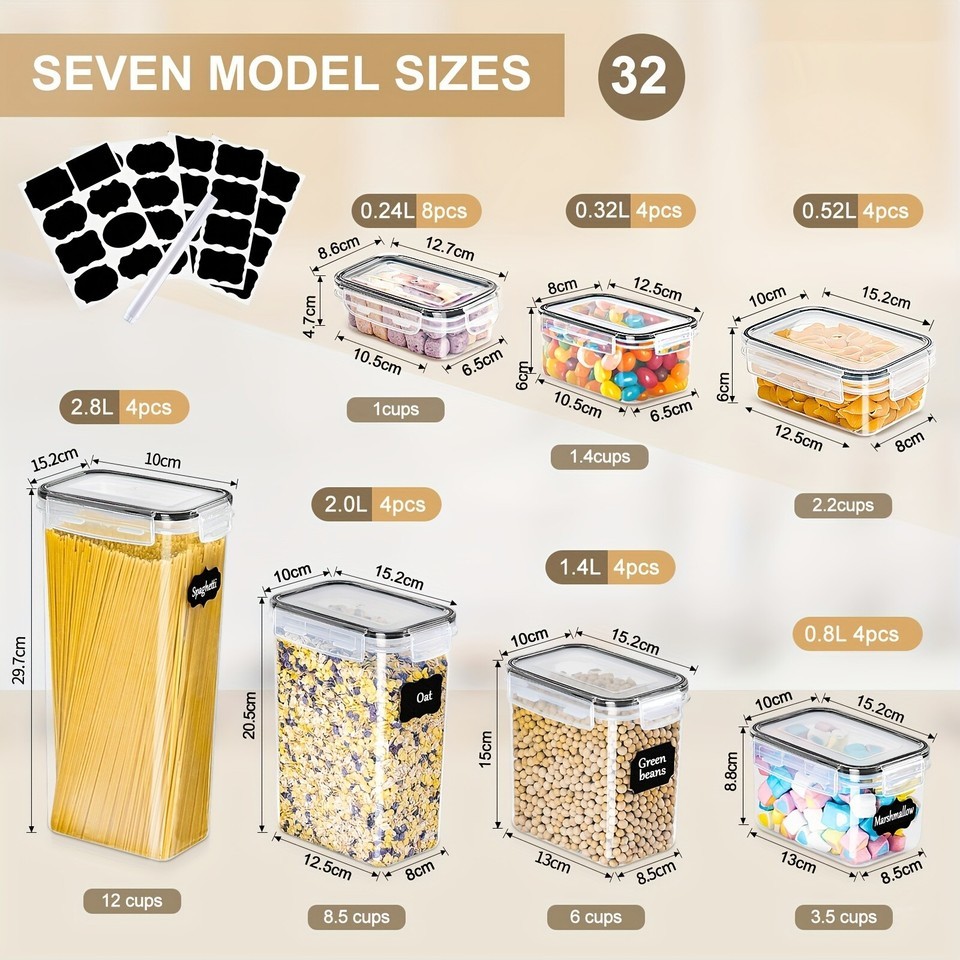 32 Sealed Food Storage Boxes with Lids, Suitable for Kitchen Storage And Accessories, Perfect for Storing Flour, Sugar, Pasta, Cereal, And Baking Ingredients In Refrigerators/cabinets, Including Labels, Stickers, Markers, And Local Warehouses