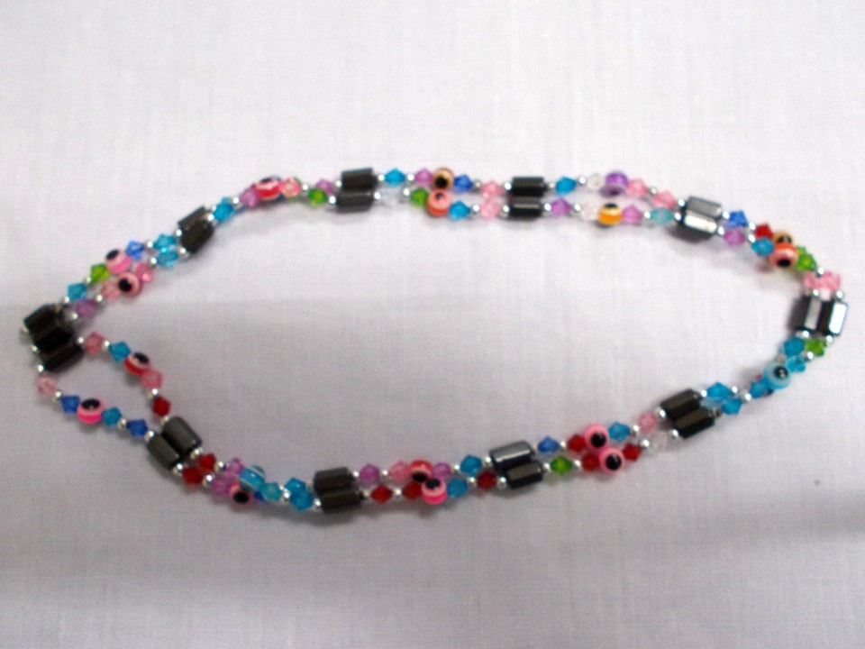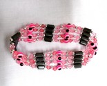 - 33" NEON PINK EVIL EYE & MAGNETIC HEMATITE BEAD STRAND WRAP BRACELET NECKLACE