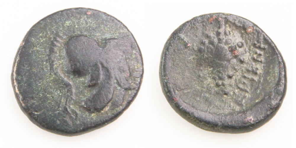 338-300 BC Lokris Opuntia AE14 Greek Coin Athena Grape Cluster SngCOP-68 338-300 BC Lokris Opuntia AE14 coin Issued for use in the Greek region of Lokris Opuntia (Eastern Locris) Obverse features Athena in a crested Corinthian helmet, facing right Reverse depicts a bunch of grapes Struck from copper alloy Diameter: 14 mm Weight: 1.9 grams Condition: Ungraded Catalog number: SNG(Cop)#68 *Weights and measurements are approximate. Please see photos for the actual item you are bidding on. California Buyers: 9% sales tax will be added. Returns Policy: About Us: If you have any questions, comments or concerns, please click "Ask a question" below, and we will respond as soon as possible. Thank you. Continental Coin and Jewelry Company Web Department: Monday ? Friday, from 10:30am ? 6:00pm PST