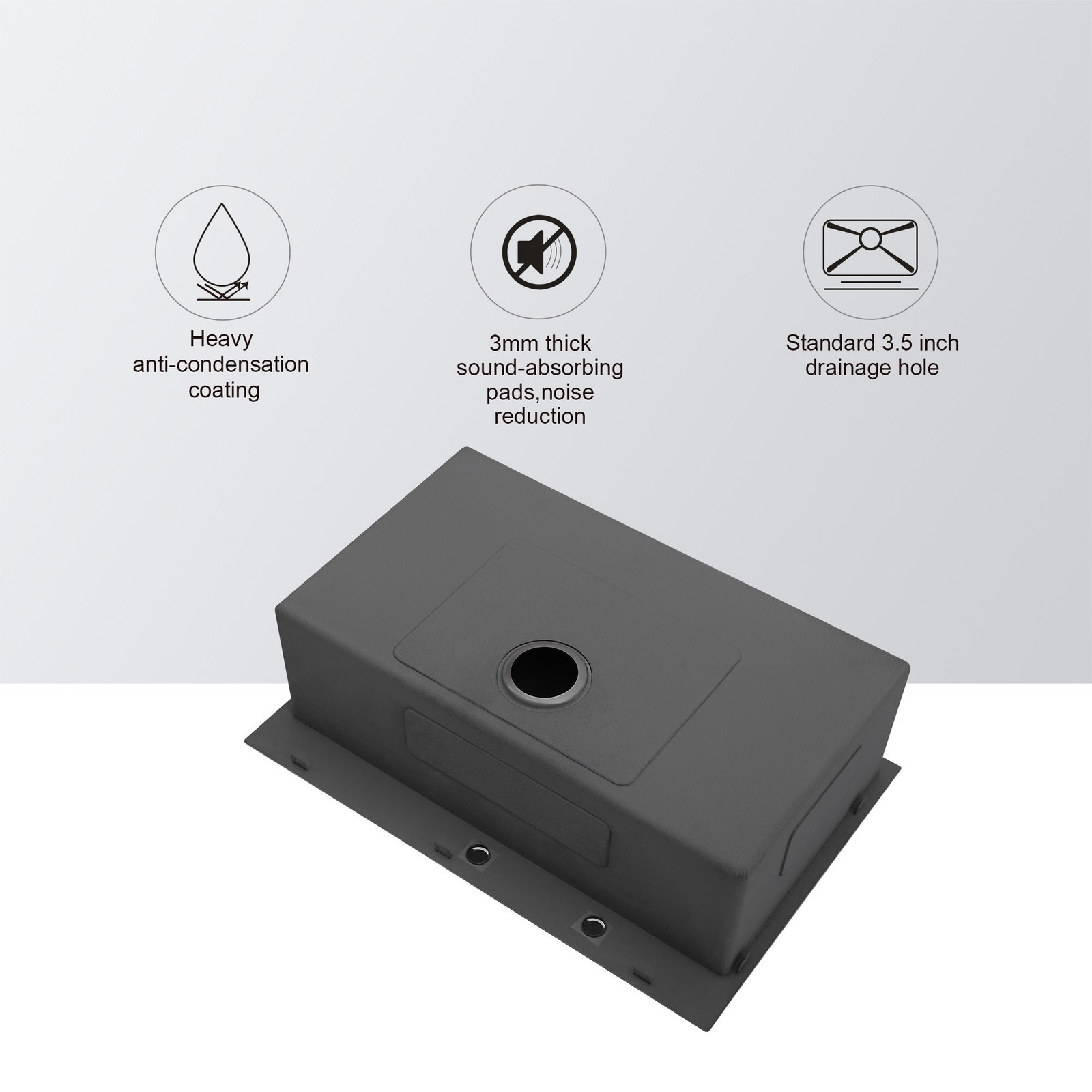 ? Drain Easily, Sound Proof ? -This 33? drop in kitchen single bowl sink with X-shaped diversion water design and a gently sloped bottom that prevents standing water inside the bowl fast drainage, no blockage.Five LARGE AND THICK rubber pads around the bottom to eliminate noise. Besides, full coating to prevent condensation and protect your cabinet.