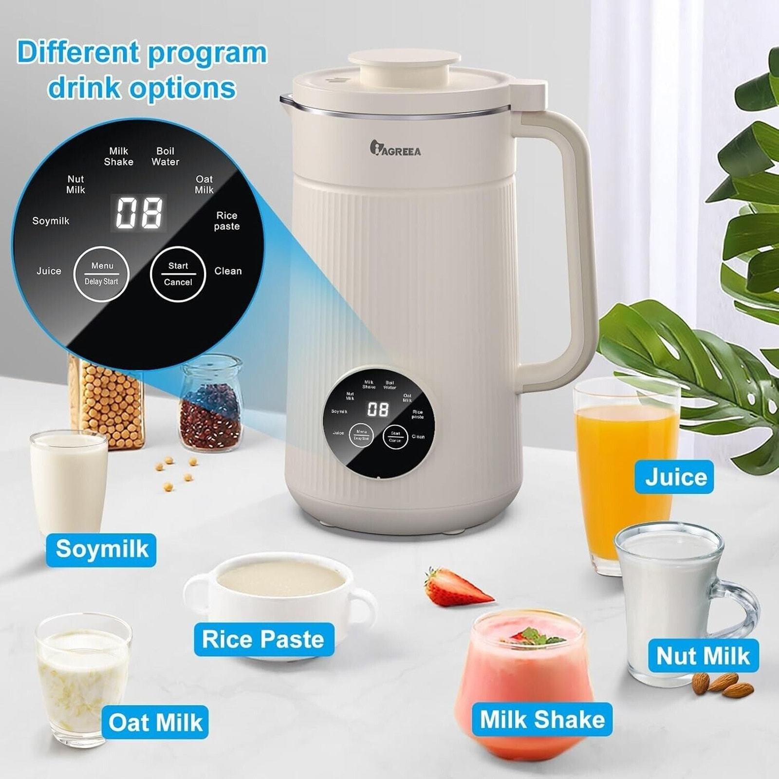 * Easy to Use -- The almond milk maker machine with digital touch control, allows 1 touch to start blending nuts and grains to achieve smooth, rich, and creamy milk. Prepare homemade plant-based milk in minutes.