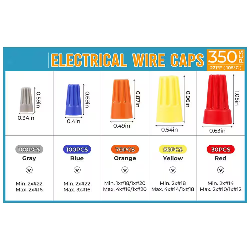 - 350-Piece Colorful Wire Caps Kit – Electrical Twist Connector Nuts Assortment Se