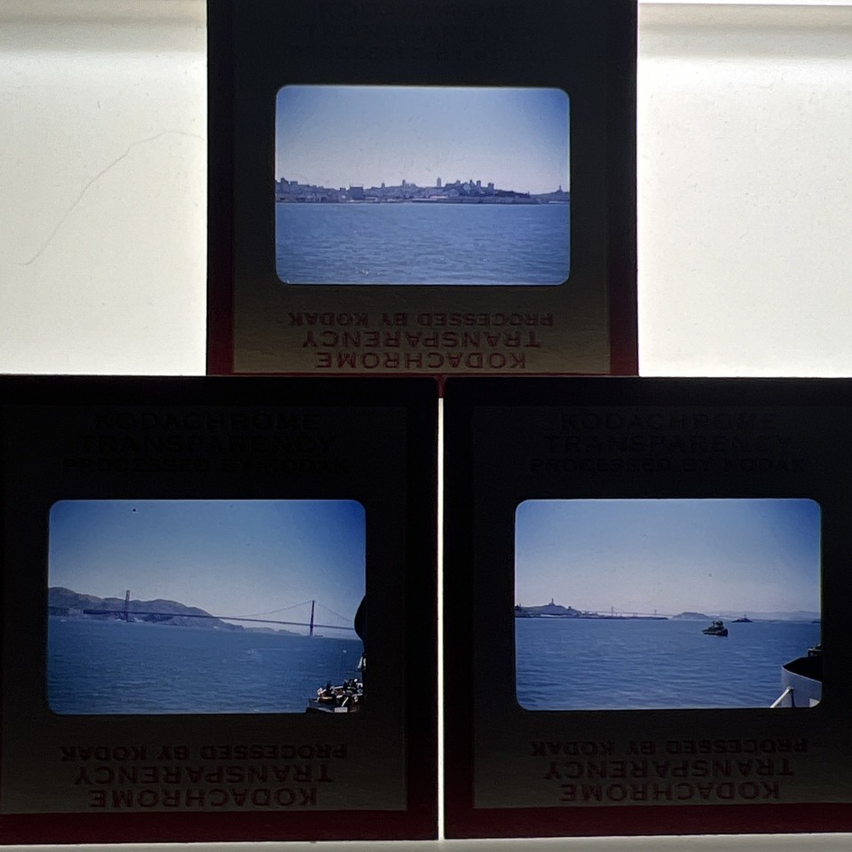 - 35mm Slide Photos San Francisco Bay Skyline Golden Gate Bridge 1950s Red Border