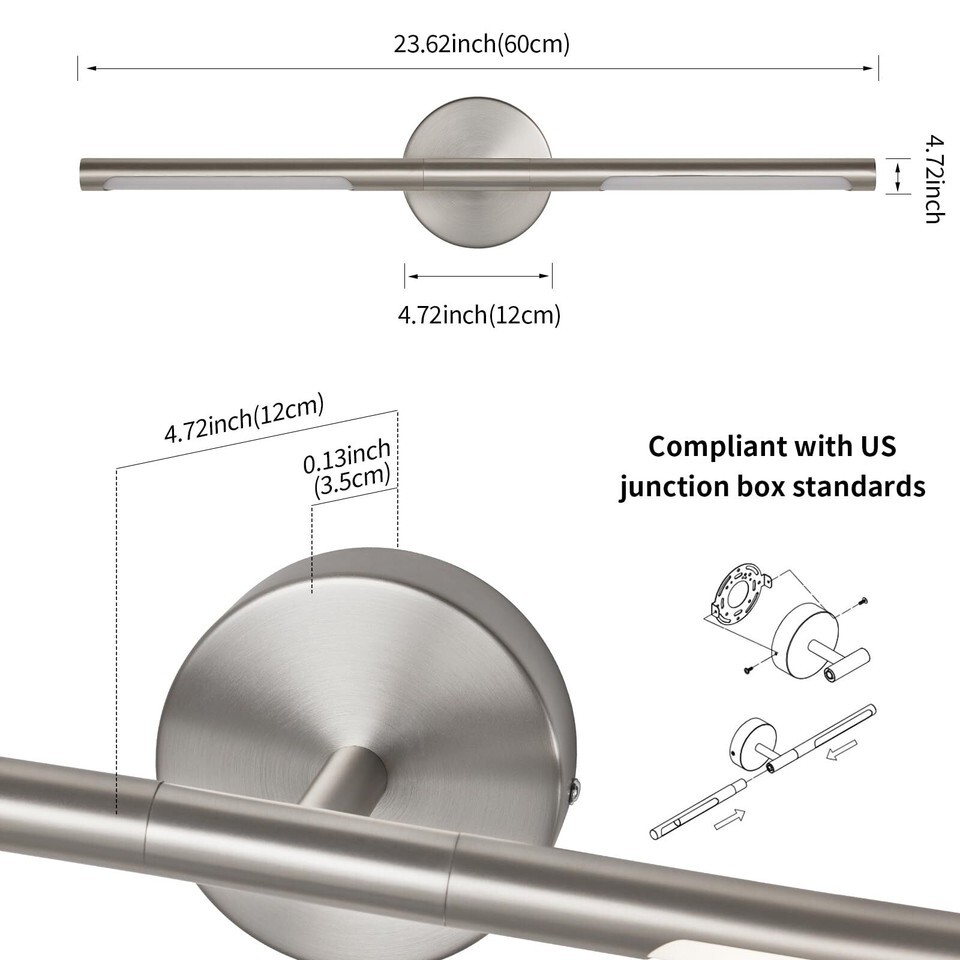 Easy Installation The bathroom lights over mirror comes with all installation accessions and installation instruction for a quick and easy installation. All you need to do is to connect the wires, mount the backplate to the wall and insert the LED tube into the base, which only takes you a few minutes. Suitable for US junction box