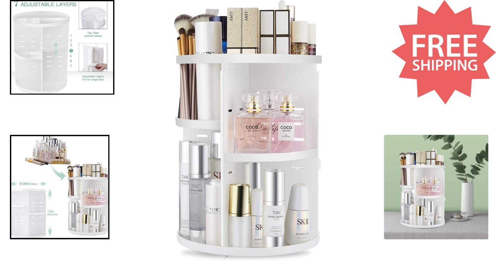 Whether you're a makeup enthusiast or simply looking to declutter, this organizer makes an invaluable addition to your collection. Gift it to loved ones or treat yourself?it's a luxurious touch for anyone's beauty space. Order your 360 Rotating Makeup Organizer today and experience the elegance and organization you've been dreaming of!