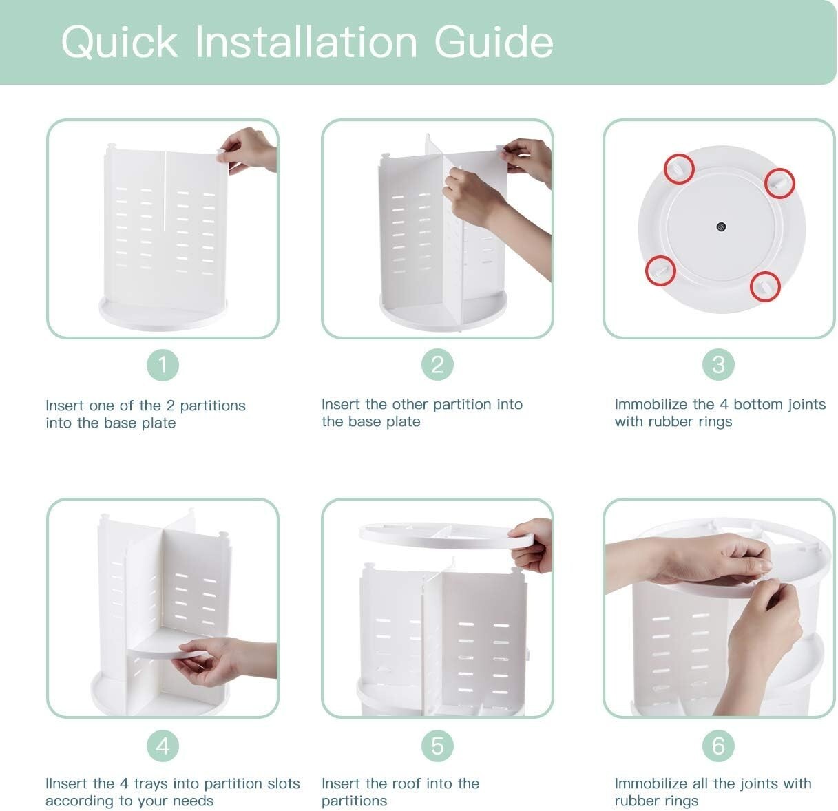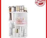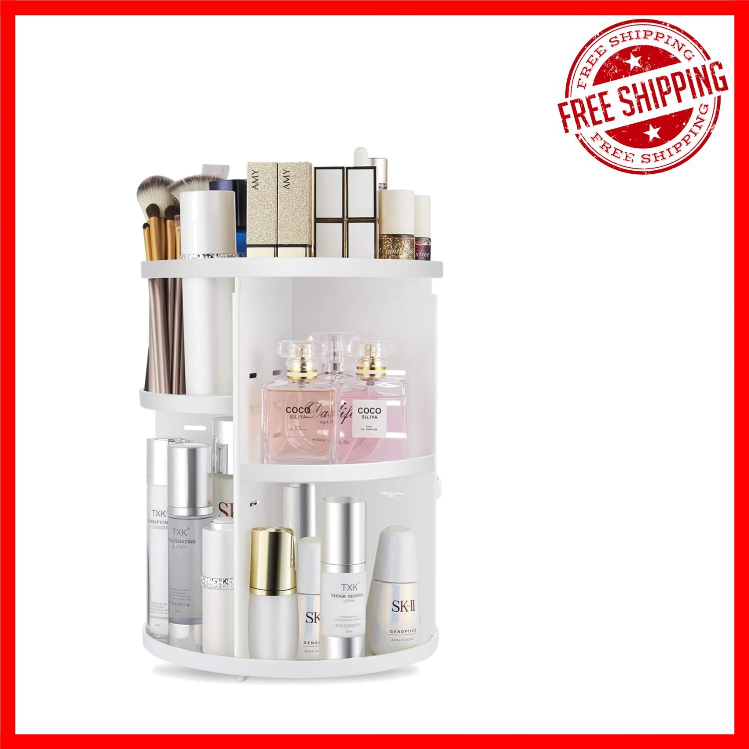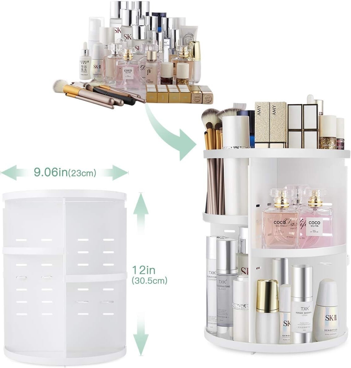 - 360 Rotating Makeup Organizer with DIY Adjustable Trays - Elegant White Caddy