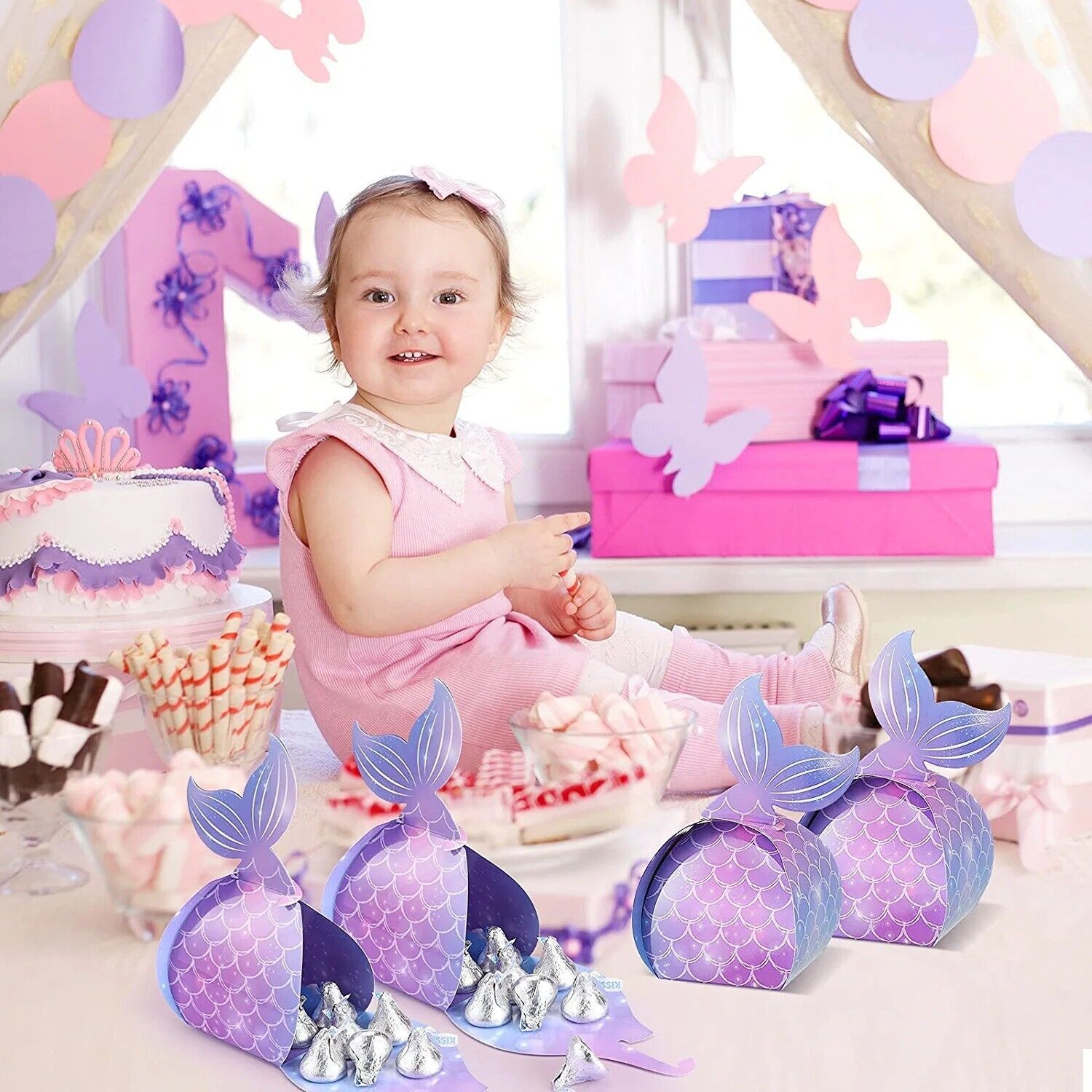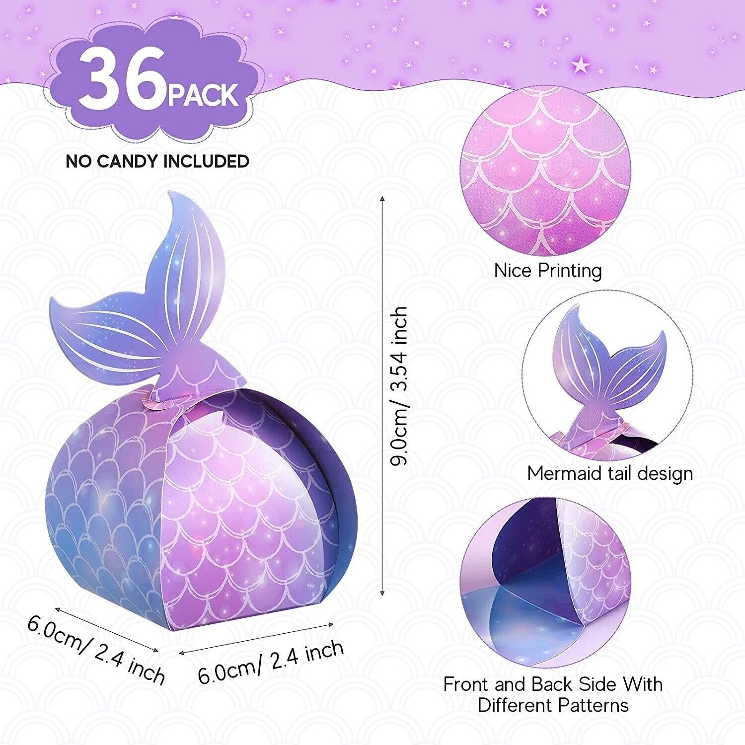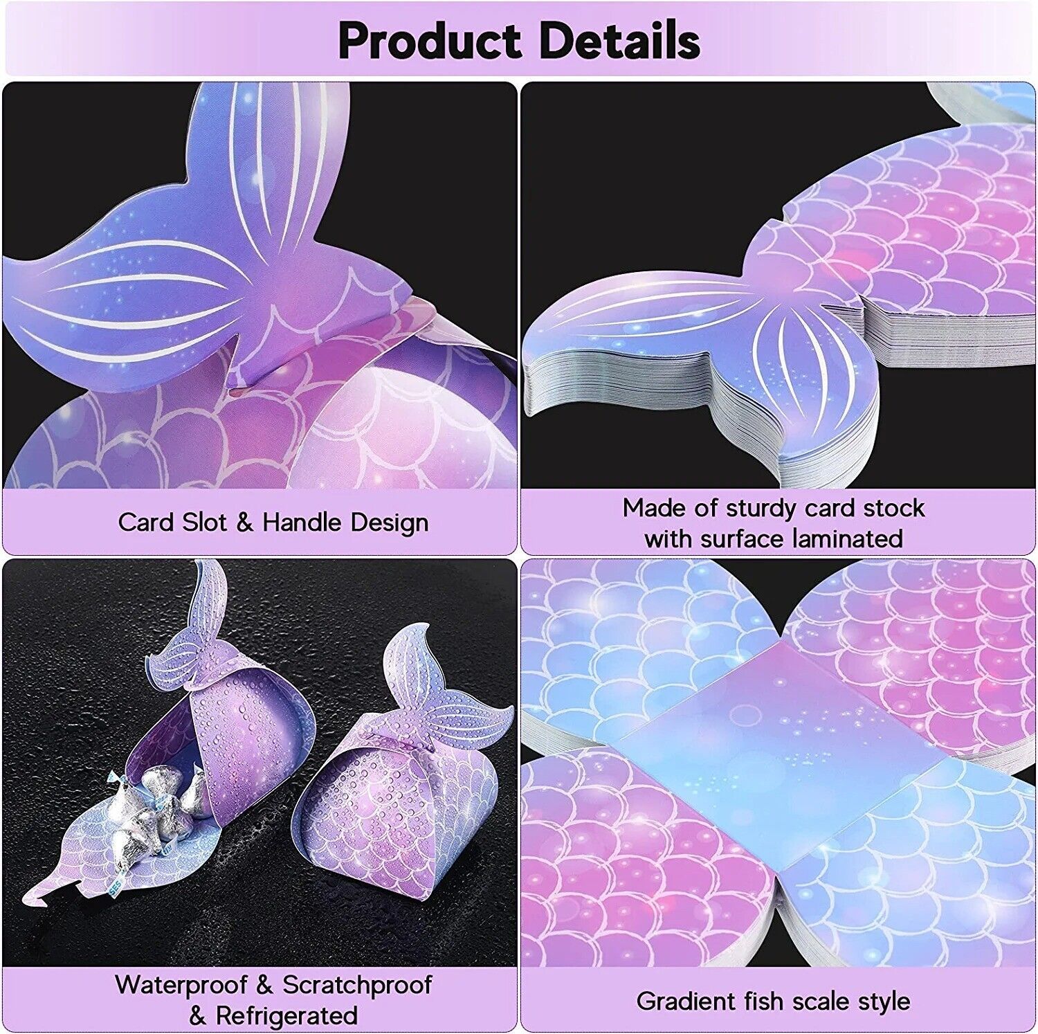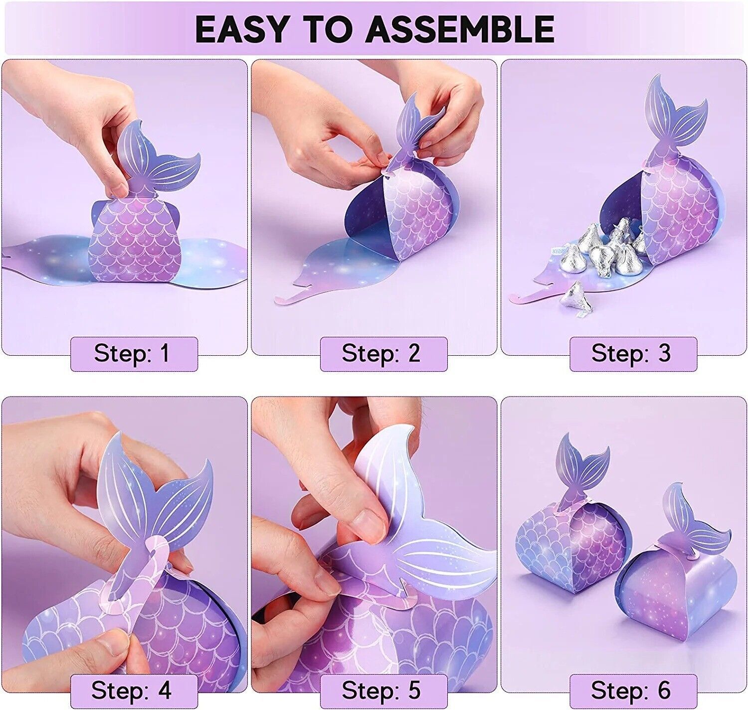 Mermaid design: the mermaid treat boxes are easy to DIY and fold, and will be glued with a mermaid tail, you can create an under the sea mermaid-themed birthday party with these favor boxes, which can add a mermaid party atmosphere, and add a nice touch to your mermaid party with these adorable mermaid favors bags designs.
