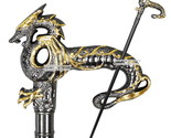 - 37" Flying Golden Dragon Gentleman's Walking Stick w/ Metal Cane and Rubber Tip