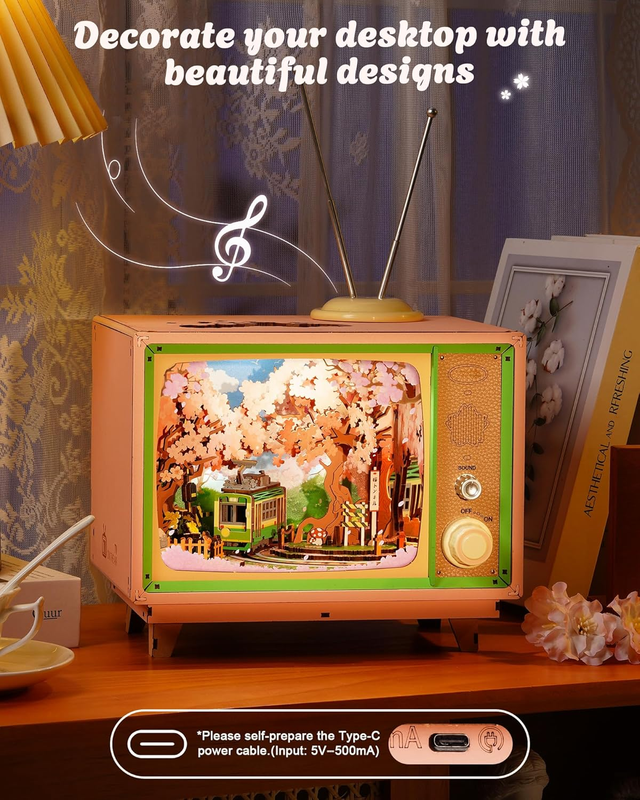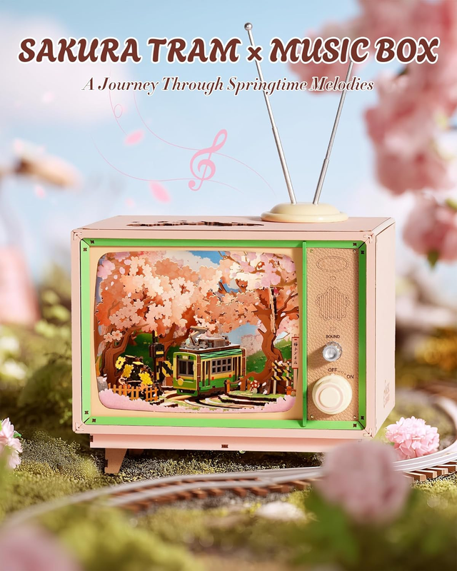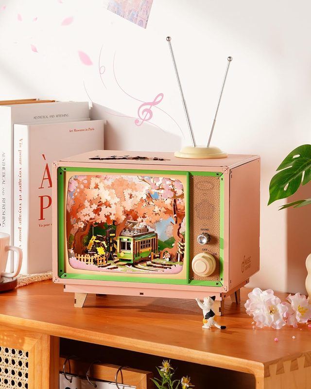 Step into a dreamy world of cherry blossoms with this Sakura Dreamy Tour 3D Wooden Puzzle Music Box. Designed like a vintage TV set and filled with serene Japanese sakura scenery, this miniature kit blends craftsmanship, creativity, and relaxing springtime charm into one unforgettable build.