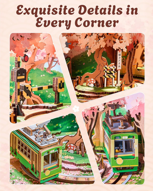 - 3D Wooden Miniature House Kit Sakura Music Box – Cherry Blossom DIY Model