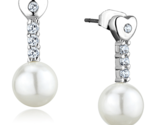 - 3W675 - Rhodium Brass Earrings with Synthetic Pearl in White