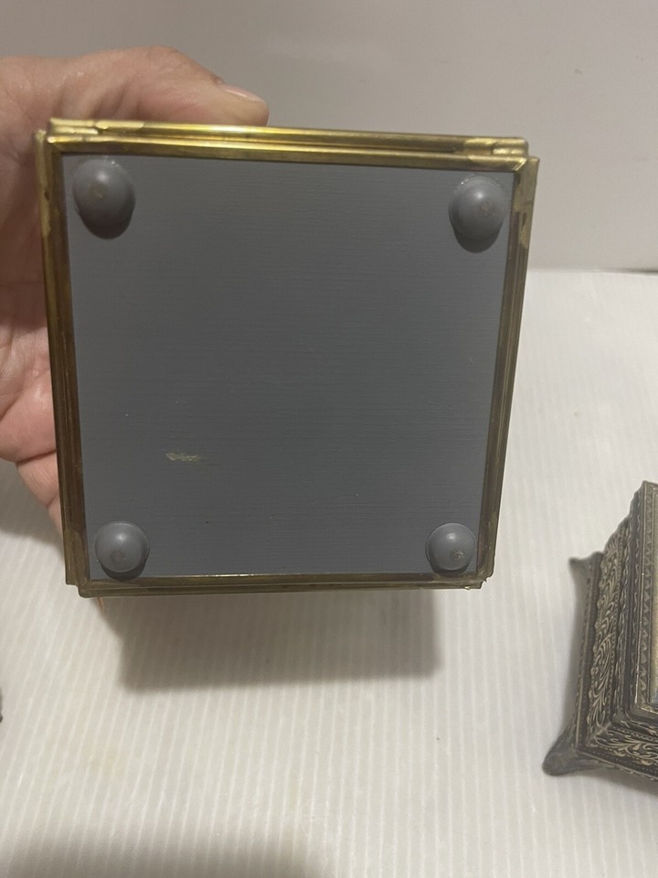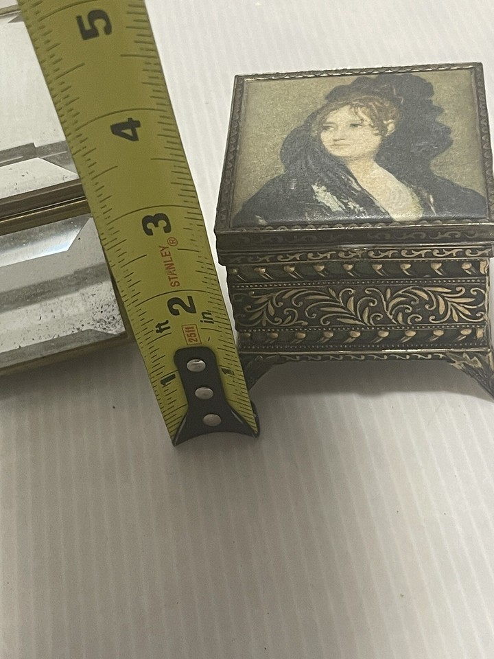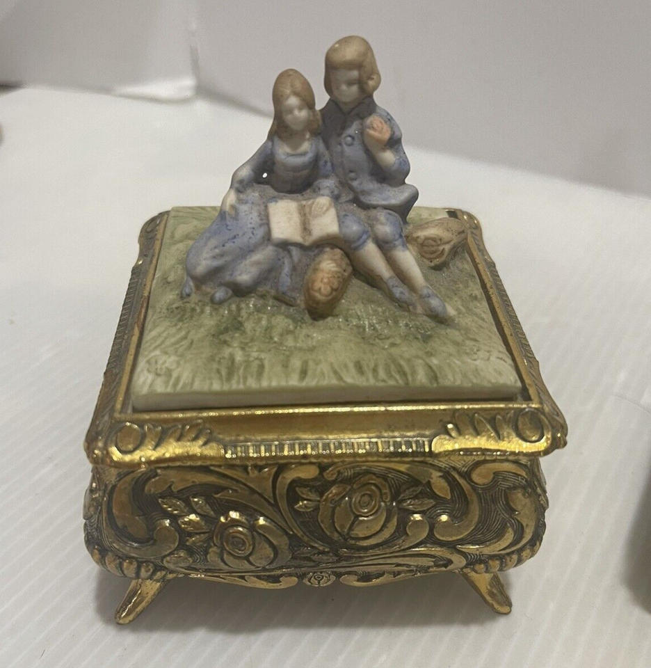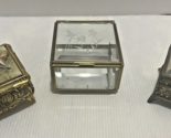- 3pc Vintage Trinket Music Box Lover's Figurines, Glass etched, Victorian picture