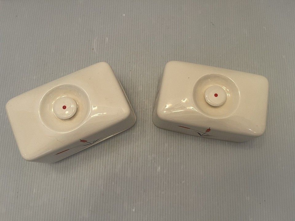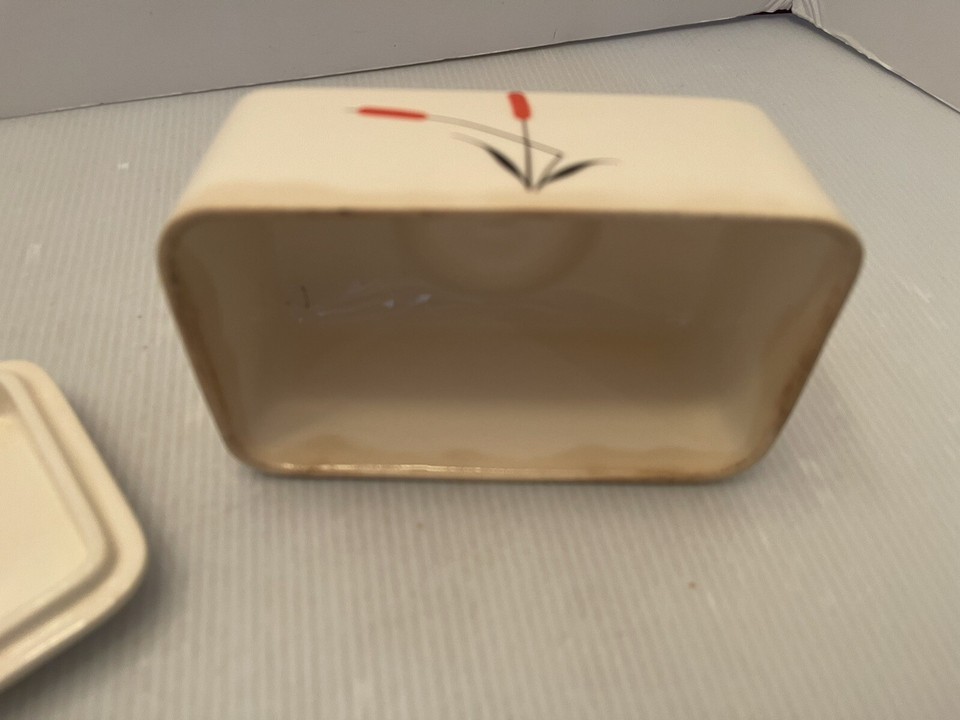 - 3pc Vintage Universal Cambridge Covered Butter Dish Cattail