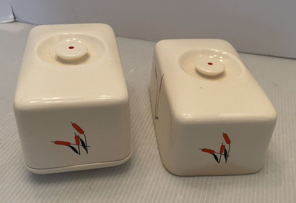3pc Vintage Universal Cambridge Covered Butter Dish Cattail
