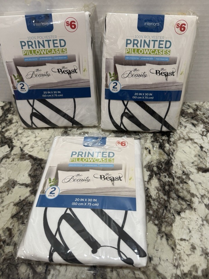 - 3pc lot 2 Piece Set Pillow Cases The Beauty The Beast 20"W×30"L New