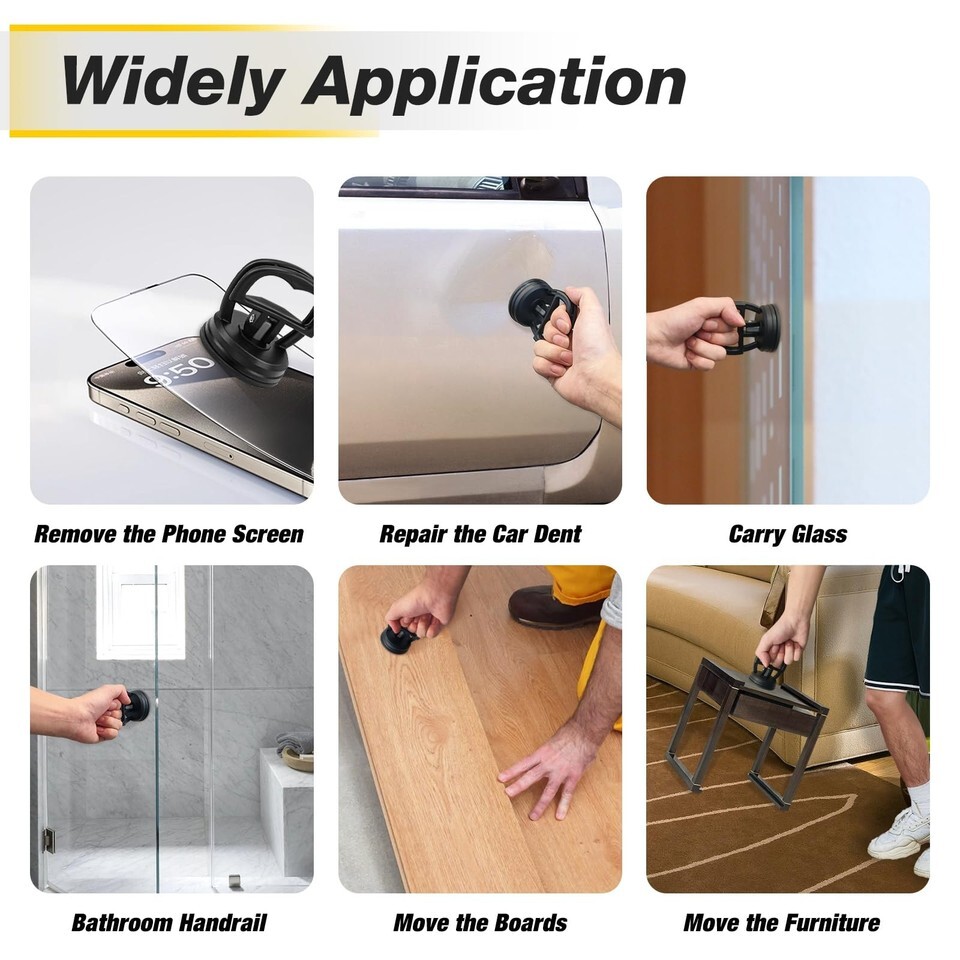 Multi-Usages Dent Puller: This paintless dent removal kit serves as a versatile tool, not limited to automotive applications. It finds utility in elevating glass, steel, furniture, tiles, and various other smooth objects. Moreover, it can function as a screen remover, door handle, or bathroom armrest